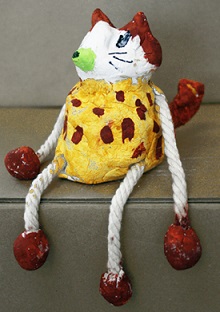 アトリエでは、こども達は月に1回の工作をとても楽しみにしてくれて、工作の仕組みや道具の使い方も自然に経験します。中には「あーそれ、知ってるー」という強者もいて、「ほな、今日は先生になって教えてもらおか?」等と言って見ますが、中々全く同じ工程にはなりません。本来は自分で作るものを決め、自分で全部材料を揃え、試行錯誤を繰り返して行くのが工作の楽しみですが、アトリエでは、1時間半で、バッチリ完成度高く、それでいて個性的な立体作品が出来るように、材料もバラエティを広く、工程も、練りに練っています。紙皿の糸掛け、いかがでしたか? |