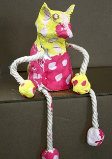 3月になって、落ち着いてきて、アトリエも『生きもの大好き』のラストは、新聞紙と布ビニールテープで動物を作りました。立体感をつかんでもらうために、お芋のような胴体、しっかりとした頭、あんパンのような肩やお尻、そして、脚先。最後に耳や尻尾をつけると、ご機嫌な動物達。高学年の子たちには、先生のお手伝い(手出し)が全くなかったので、自分一人で最後まで頑張りました。(一部、途中で、作っているものが変わった子もいましたが…)この1年間も、立体作品を作品展で披露することができませんでしたが、そのぶん、できるだけ、教室の窓にみんなの作品を貼らせてもらうことができました。ある意味、年中作品展やってるみたいな感じでしたね。これからも、楽しいアトリエはもちろんですが、一つ一つ丁寧に、自分の持ち味を発揮できますように。毎回、自分で何か感じ取れますように。 |
