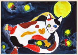 8月、もう、恐怖すら感じさせる程の暑さの続く毎日。エアコンから一歩も出ないで歩かない先生は夏太りしましたが、こども達のあのエネルギーはどこから来るのでしょう。もちろん、先生も課題ひとつひとつ、渾身の力を込めてプランをたてますが、そこで、また、こども達も渾身の力を込めて作り上げてくれます。「アートは自由ょ」とか「アートはひとそれぞれょ」とか、先生は口では言いますが、なかなか縛りのあるテーマでも、1時間半でガッツリ仕上げてくるこのパワー、本当に凄いよー。 |