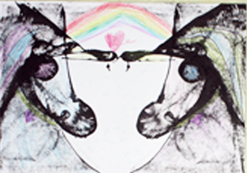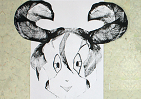 1月、恒例となった、年の初めの自画像も、前年に描いた子達は結構そのことを覚えているもので、それでも、また、それぞれ鏡の中の自分と格闘していました。が、その次の週、墨と半紙を渡して好きに動物を描いてもらったら、まぁ、脱力系のオンパレード。ササッと描いたのも気に入ったのか、次々と何枚も。なんかもう、やたら、楽しそうでした。いつもかなり気合いを入れて描いてますから、こんな絵も味わい深いです。 |