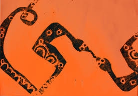 | 2月、いよいよ作品発表会の準備です。今年のテーマは「まわれ、まわれ、くるくるまわれ」に決定。ハートの中に渦巻きを描いたり、切り絵を反転させた渦巻きをを作ったり、スチレン版画の原版を切って、ゆらゆら回るやじろべえをつくったり、例年のような、動物や花等とはちょっと違う取り組みです。