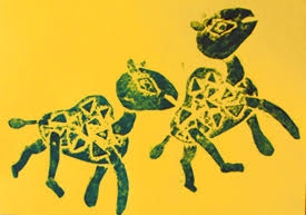 | 10月!麗しき10月!素晴らしい10月。芸術の秋ですよー。こども達も元気です。アトリエも色々挑戦いたしました。低学年、つまり、1年生、2年生も、先生の「こうしよう」とか「こうしたらいいよ」とかの言葉にも反応してくれてます。うん?今までは野放しだったの?いえいえ、じっと座っていられるのは立派です。勝手にお絵描きしてるわけじゃないので、先生の声もよく聞いてね。で、2回に分けた動物の絵。まず、背景をローラー版画で色々工夫して草原のイメージで仕上げ、次の週は、いっぱい資料を探して好きな動物を描きました。おー、ユニークな動物達、おー、資料いらんかった?年に1度はじっくり動物の絵を描きますが、毎年、感心することしきりです。 |