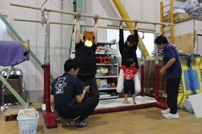 試合に出場するには体操協会の年会費や参加料、審判委託金などの 費用がかかりますので、選手の保護者会でフリーマーケットとコロコロ まつりを行い、収益を費用に充てています。