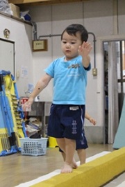 最後はお楽しみのボーリング、初めての子もいましたが、すねたり喜んだり忙しく楽しみました。 |