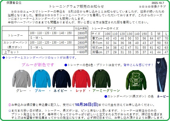 | トレーナー・スレンダーパンツの販売 (7.10.7) |
