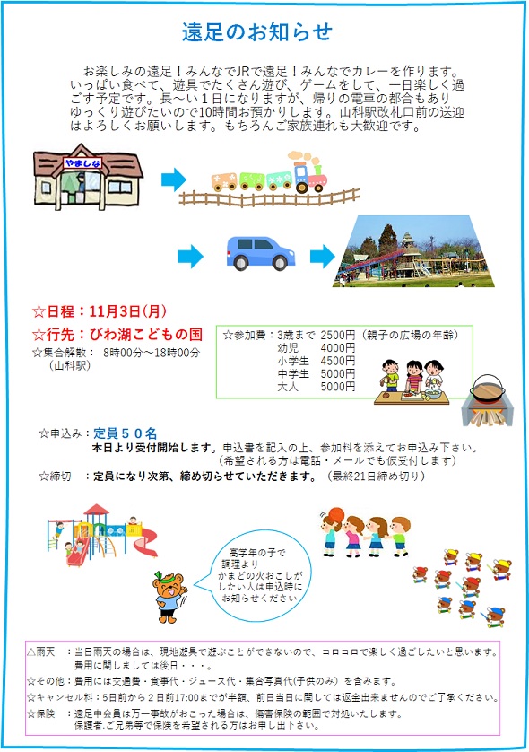 お待たせしました、遠足の案内ですヽ(´∀`。)ノ゚